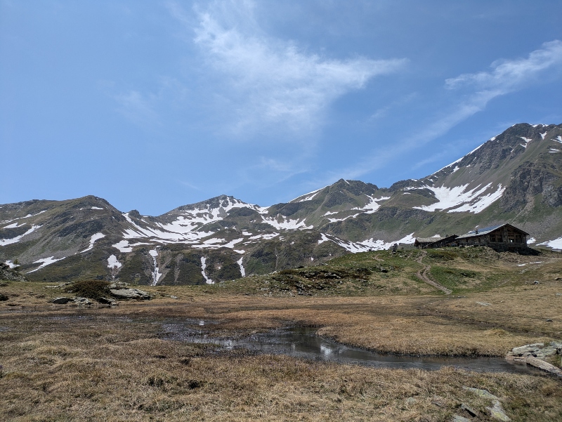 Bij de afdaling naar de Valle di Urtier wandelen we een idyllisch dalletje in met een zomerboerderij die zo uit het boek van Cognetti zou kunnen zijn geplukt. Een paar mannen bewaken hier een grote kudde geiten en koeien. Nog een paar weken en ze zullen de winterstallen weer opzoeken.