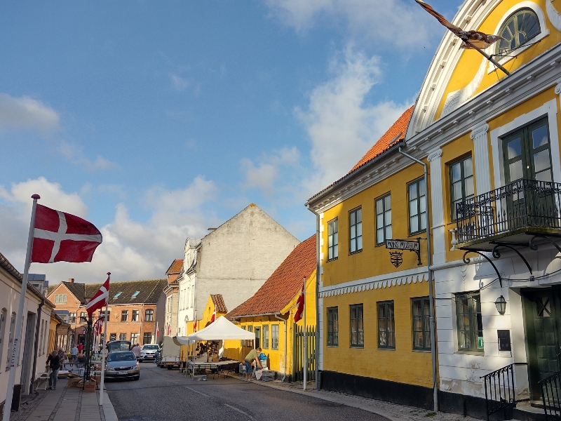 Deze shelters, open houten huisjes voor ongeveer vier personen, zijn vrij toegankelijk voor wandelaars en fietsers. Vaak staan er meerdere shelters op een plek, waar je ook een vuurpit en (als je geluk hebt) hout vindt om ’s avonds een vuurtje te maken. In de shelter leg je je slaapmat en slaapzak neer voor een comfortabele nachtrust. Vanaf de shelter wandel ik naar de haven en de kleine achthoekige kerk, en dwaal ik door Nyord, het rustige (en enige) dorpje met prachtige oude boerderijen. Als je geluk hebt, kun je hier met helder weer van september tot en met maart de Melkweg en zijn heldere sterrenhemel zien. Het is een van de donkerste plekken in Europa, zonder lichtvervuiling. Eenmaal terug bij de shelter maak ik een kampvuur en bereid het eten voor. Het is genieten met een mooie zonsondergang en ik kruip mijn slaapzak in, nog warm van het kampvuur, voor een eerste nacht buiten.