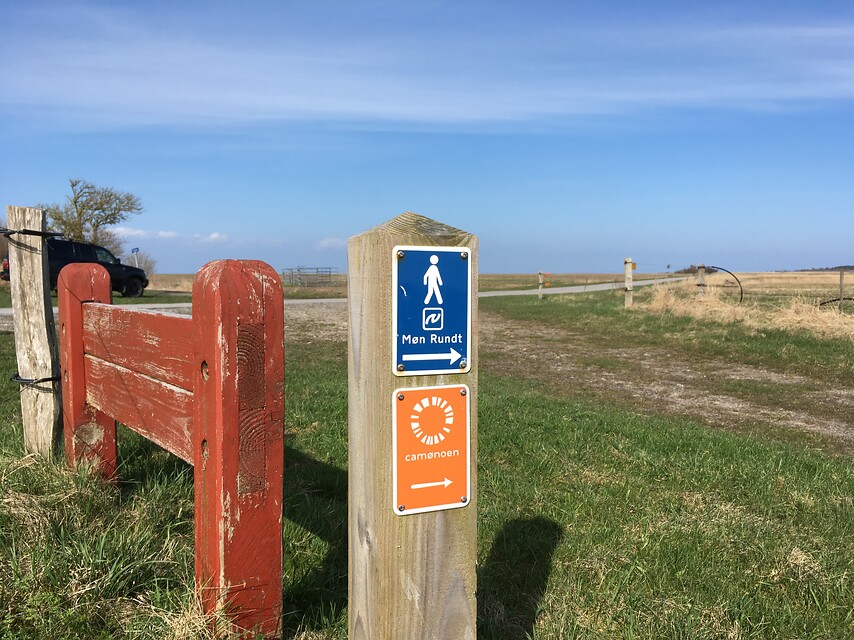 Deze langeafstandswandeling van 175 km begint op Møn, het grootste eiland van de drie, in de oude handelsstad Stege. Al lopend naar het beginpunt, door het oude centrum, word je verrast door een mix van architectuur uit heden en verleden. Moderne minimalistische gevels én gebouwen uit de 11e eeuw, met kenmerkende houten balken en vaak een kleurrijk geverfde buitenkant, wisselen elkaar af. Het museum van Møn, zo’n typisch geel geschilderd oud gebouw, is het beginpunt van de Camøno Trail. Je kunt er overnachten op een van de houten bedden in de schuur, mits je zelf een slaapmat en slaapzak meeneemt. Dat doe ik en de volgende morgen loop ik zo de uitstekend gemarkeerde wandelpaden op richting het eiland Nyord. Wat direct opvalt is de rust, de echt onbeschrijfelijke serene rust hier. Op de route kom je vrijwel niemand tegen en alleen op de brug zie ik wat vissers, die hun geluk beproeven.