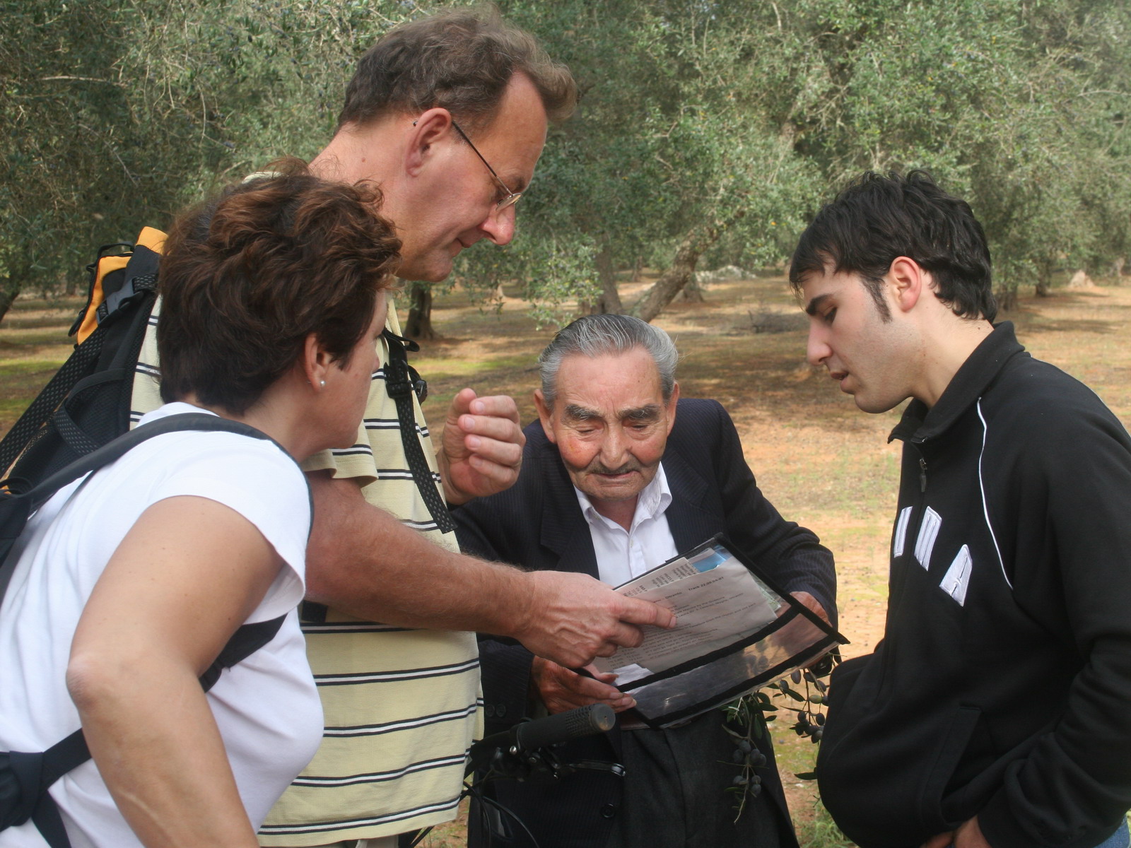 En ja, wat volgt is een percorso pittoresco. Een golvende slingerweg, rijk aan zwaluwen, stuiterend op een onzichtbaar luchtmatras, trosjes trulli en groen- & geelrode wijngaarden. Om hierna in het centro storico van Locorotondo, beelderig barok, te genieten van puntgevelhuizen, vergezichten en cappuccino. Waarna de teerstroken naar Cisternino volgen, olijfgaarden doorklievend, amper een fiets breed en voorzien van asfalt dat ons nu al doet denken aan de mozaïekvloer van de Santa Maria-kathedraal van Otranto, terwijl die toch pas voor Dag 6 op het programma staat. Een olijfboertje, gegroefd gelijk zijn geboomte, roept vriendelijk: “Buon viaggio ragazzi!”
