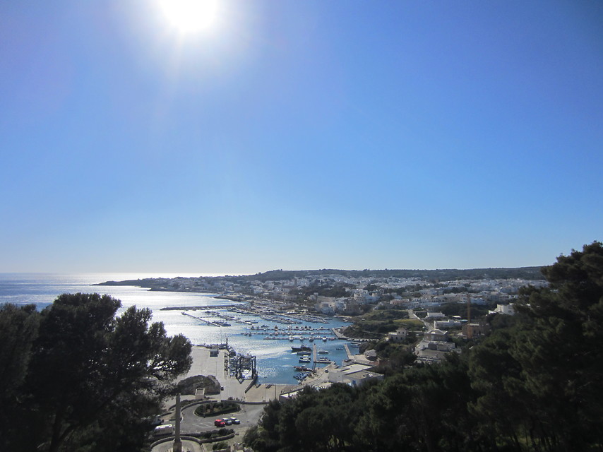 Voor ons golft de rotskliffenweg tussen Santa Maria de Leuca en Otranto. “Volgens onze reisgids een van de mooiste stukjes van Puglia”, weet Jelle. “Goed voor de pittigste dag van de reis.” Pittig? 520 meter klimmen en dalen. Met knalblauwe vergezichten, baaien groot & klein, antieke kerk- en vuurtorens, Grotta Zinzulusa en Grotta Romanelli, 539 amandelbomen, 674 hagedissen en 827 koolwitjes. Plus: 2 wegversperringen bij Vito, een Salentoniër met ‘n neusje voor ‘t geven van foute info, waardoor we minstens 7 kilometer omrijden. Een tikkeltje moe maar allemachtig voldaan bereiken we Otranto. Jelle: “De ‘Poort naar de Oriënt’ in zowel Oudheid als Middeleeuwen, eindhalte van de Via Appia vanuit Rome en slechts 80 kilometer verwijderd van Albanië. Met in het ommuurde centro storico zowel het Byzantijnse San Pietro-kerkje als de Santa Maria Annunziata-kathedraal, goed voor tal van middeleeuwse fresco’s én Zuid-Italiës grootste behouden mozaïekvloer uit die tijd, rijk aan fabelwezens. En oh ja, in 1480 wierp een vloot Turkse schepen de ankers uit hier in de haven. De stad werd geplunderd en de bisschop in tweeën gezaagd, waarna 800 Otranti moesten kiezen tussen de zaag of het christelijke geloof afzweren. Alle 800 werden onthoofd, zeg maar.”