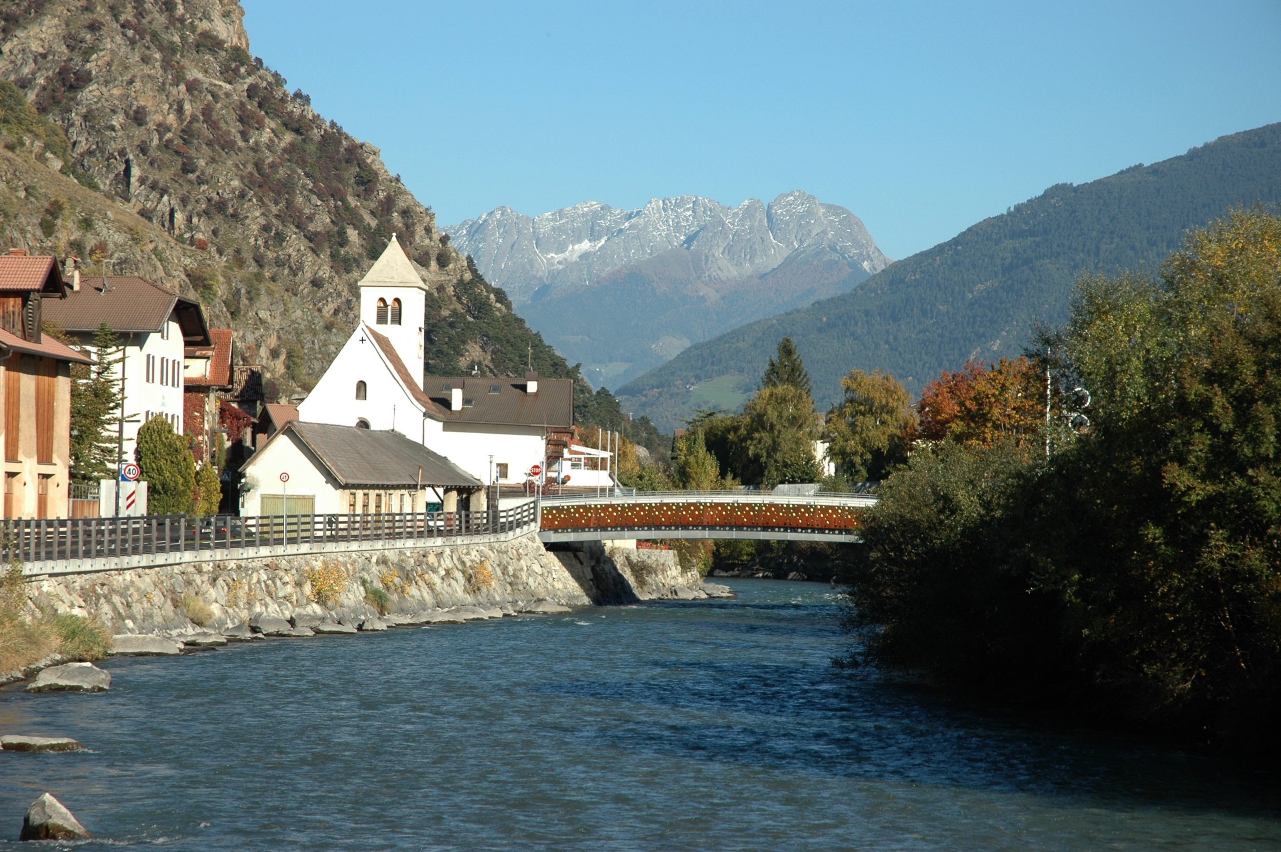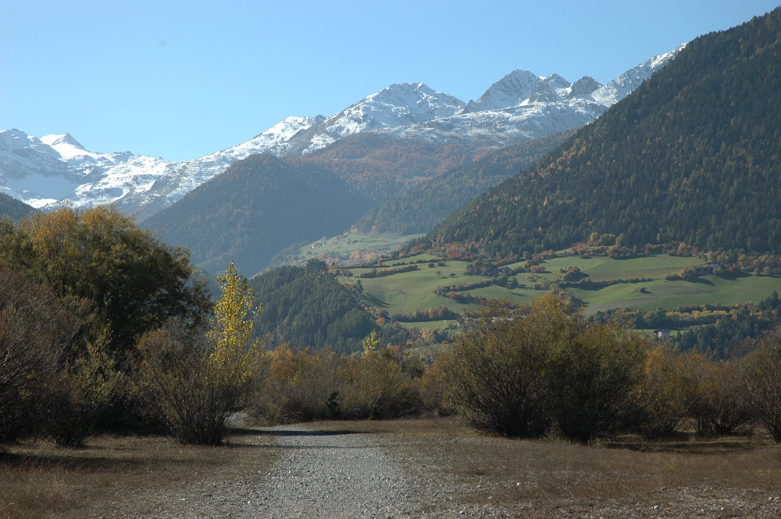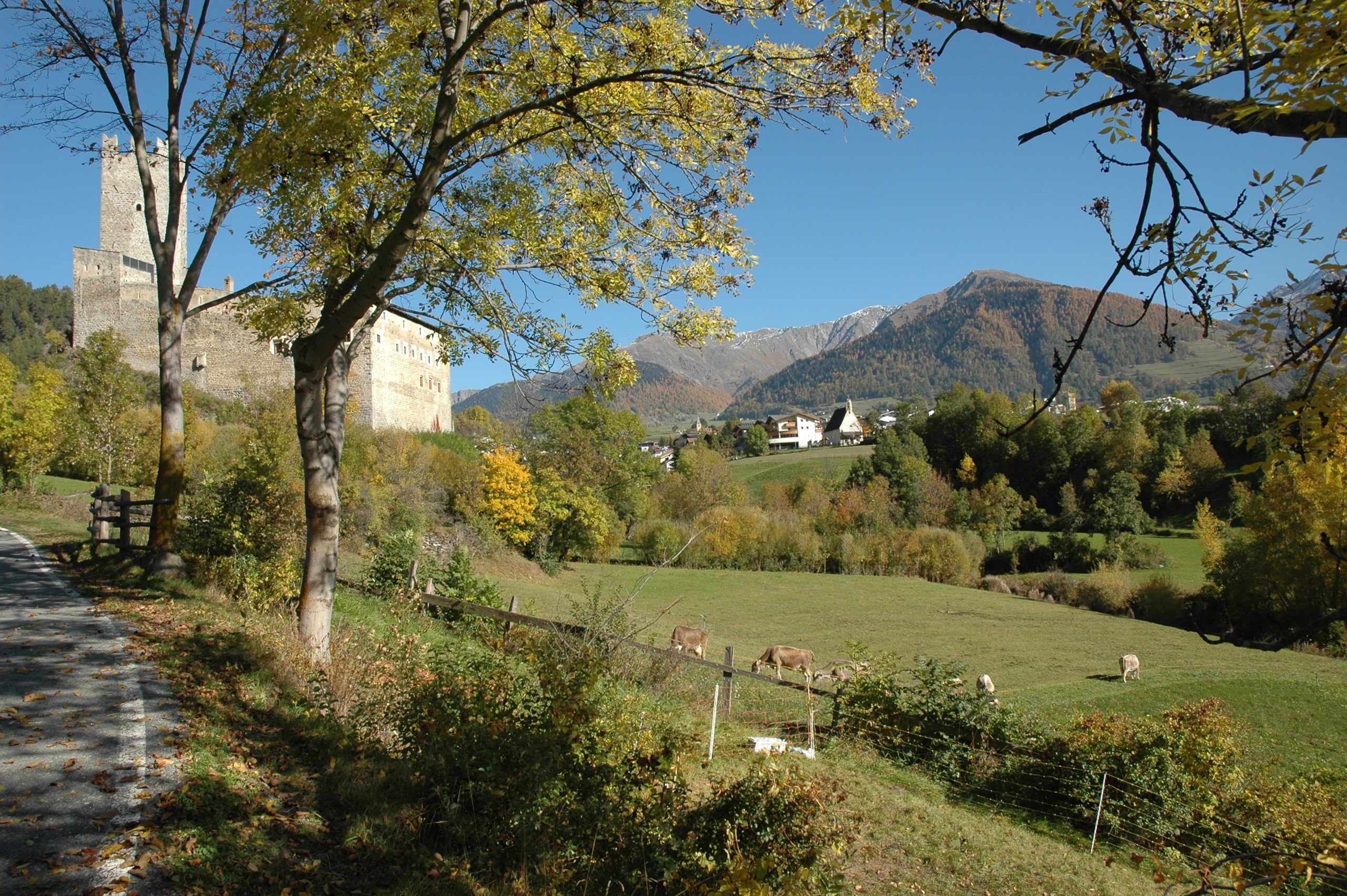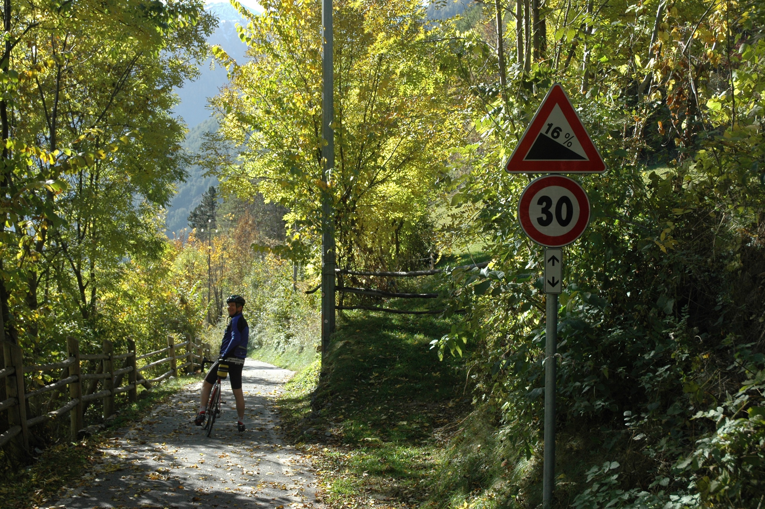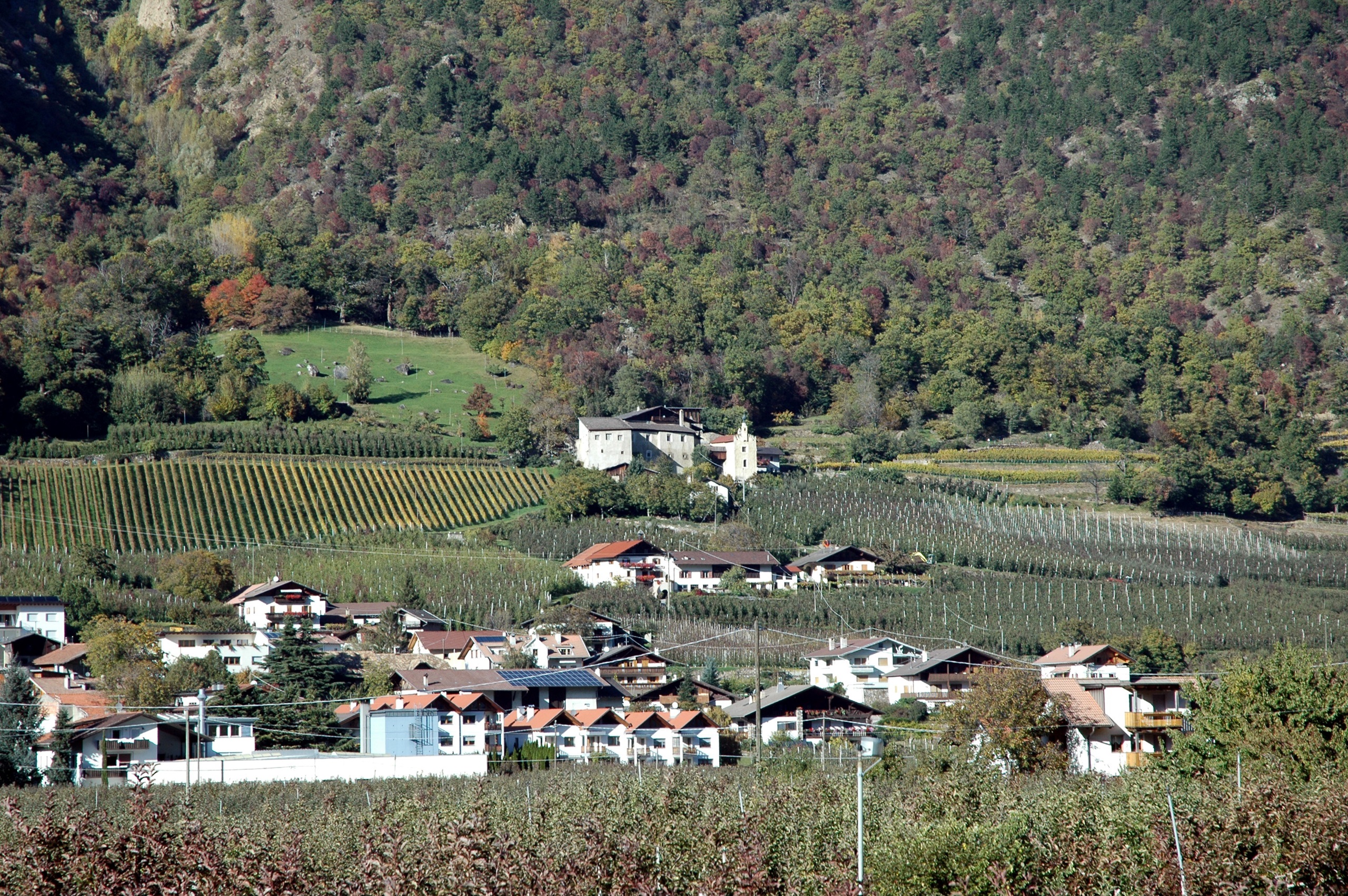 Het is herfst, dat is aan de temperaturen niet te merken, maar des te meer aan de bedrijvigheid. De boeren zijn druk: de appels moeten geplukt. Groene kratten in stapels langs de boomgaard, de ultrasmalle tractoren die precies tussen de bomenrij kunnen rijden en natuurlijk de handarbeid om het rode goud te verzamelen. Gebiologeerd door de automatismen in de actie en het besef hoeveel dit betekent voor deze regio blijven we staan kijken. Als dank voor de bewonderende blikken ontvangen we een appeltje voor de dorst. Tevreden vervolgen we de weg.