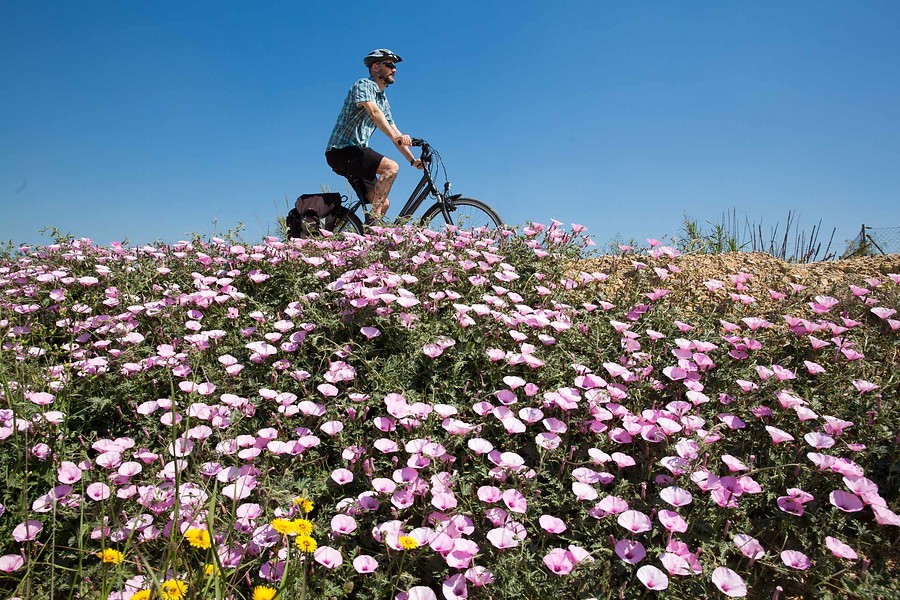 Oud-Op Pad-hoofdredacteur Kees Lucassen (66) maakte meer dan honderd fietsreizen. Gevraagd naar de mooiste route, zegt hij: “Onmogelijk te zeggen. Maar de Camino del Cid heb ik drie keer gereden, dat zegt wel wat. De eerste keer, in maart 1994, was door een kaal, winters Spanje, tijdens de Semana Santa. Maar de laatste keer, in mei 2025, fietste ik door 86 tinten groen. Over die reis schreef ik dit verhaal.”