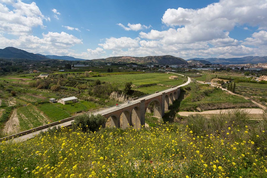 “Vanuit Teruel zijn er twee routes mogelijk. Een mooie, zware en lange, via vijf bergpassen, stokoud Cantavieja & Villafranca del Cid. Pakweg 310 kilometer tot aan de stad Segorbe. En een korte, over een voormalige spoorlijn, dus vrijwel vlak, de Via Verde de Ojos Negros. En dan is Segorbe slechts 110 kilometer ver. Omdat ik de lange weg al in 1996 heb gefietst, koos ik nu voor de Via Verde. Over asfalt & gravel, via hoge viaducten & donkere tunnels. Allesbehalve lelijk, maar toch ook wat saai, want vrijwel vlak (en soms met snelwegzicht).