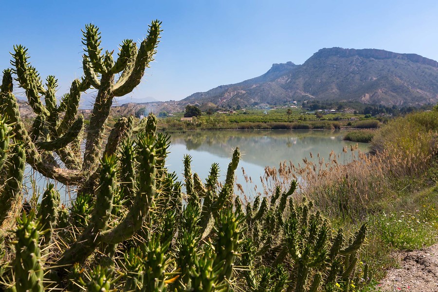 Hij eet olijven en ik vertel. Over hoe ik na Valencia nog maar eens in een andere wereld kwam. Die van het Parque Natural de la Albufera, rijk aan nevelig moeras, felgroene rijstvelden, zwarte ibissen, roze flamingo’s, puike paella, vliegende herten, kleine vissershuisjes & Spanjes grootste zoetwatermeer. En over hoe ik daarna, rode verfklodders volgend, naar Xàtiva fietste. Stokoud stadje onder een heuvel, gekroond met een castillo – uiteraard − en tjokvol monumenten. En daarna verder, bergop-bergaf, langs één stuwmeer, tienduizend citroenbomen en nog net wat meer vlinderlokkende kogeldistels. Plus, in de berm: drie dode koelkasten en een uitgemergeld schapenkarkas.