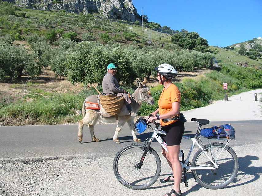“Kort samengevat? Onder een verzengend zonnetje − goed voor 33 graden Celsius in de schaduw, die er nauwelijks was − naar hier gefietst. Via 1001 geiten & schapen (verstopt in zeeën van wuivend koren), donder, bliksem & hagel, hotel Puerta de Andalucia in Puebla de Don Fadrique (dorp onder nog maar eens tienduizend sterren), het Parque Natural Sierra de María (met Vélez Blanco, een wit bergdorp) en de EuroVelo 8 (mijn derde kustroute).”
