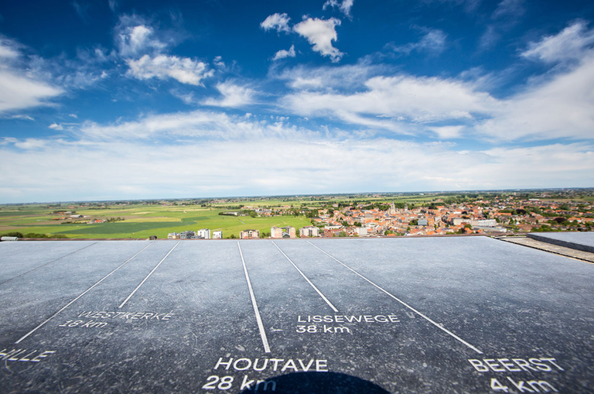 Briljant plan. Als we een klein uur later verder fietsen, tinkelen er twee flesjes in mijn linker voortas. Zo rijden we, terwijl onderweg zowel de Dodengang – loopgraven met versteende zandzakken, prikkeldraad en klaprozen – als de IJzertoren herinneren aan wat nooit meer gebeuren mag, via Kloefhoek en Kaaskerke naar Diksmuide.