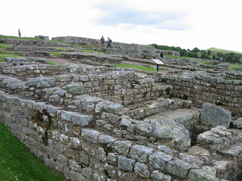 De tweede dag, als ik Newcastle achter me laat, kom ik in het mooie Engelse coulisselandschap terecht en doet de muur zijn intrede. Althans, kleine stukjes muur, als de eerste noten van een muziekstuk, die doen verlangen naar meer. In Wylam, een idyllisch dorpje dat zo uit de Truman show weggelopen zou kunnen zijn, ontmoet ik twee mannen uit Yorkshire, Neal en Geoff, een ex-politieman en een ex-kroegbaas die ook langs de muur lopen. De rest van de tocht komen we elkaar vaak tegen en zorgen ze voor veel gezelligheid en humor. Wat een opluchting na mijn ontmoeting met aquamarijnblauw-mevrouw.