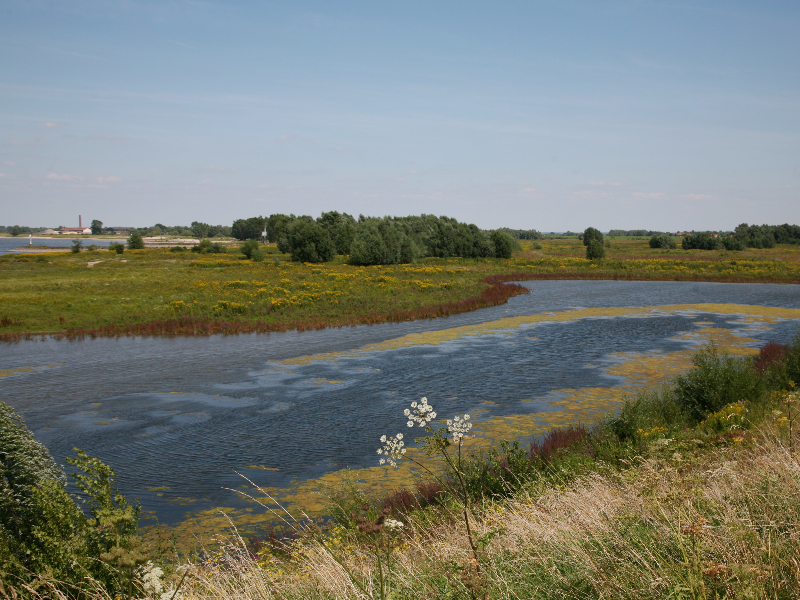 Voorbij Bunde voert het Fietserpad dicht langs de Maas, schampt Geulle aan de Maas en doorsnijdt natuurgebied Maasvallei, een vlakte van verruigd gras, ingeklemd tussen het Julianakanaal en de Maas die grote meanders het vlakke landschap doorsnijdt. Vanaf Urmond (mooi terpkerkje) fiets je langs moestuinen en boerengehuchten (Veldschuur!) naar Obbicht, waar de Maas stroperig tussen rafelige oevers kabbelt of, zoals in 1992, hoog en dreigend tegen de dijk klotst. Nieuwe natuur, maar ook veel grindwinning vanaf hier.