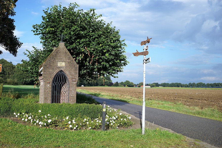 In de bossen van Montferland wijzen bordjes de weg van het Pieterpad. Op de helft.. Voorbij Stokkum en kasteel Huis Bergh in ‘s Heerenberg trekt het Fietserpad door het Achterhoeks coulissenlandschap: over boerenlandweggetjes waarlangs maisvelden, Saksische boerderijen, weilanden vol grazende koeien als decors langs je heen schuiven. Leuk en typisch Achterhoeks zijn de RUST-punten. Eindpunt vandaag is mooi Aalten.