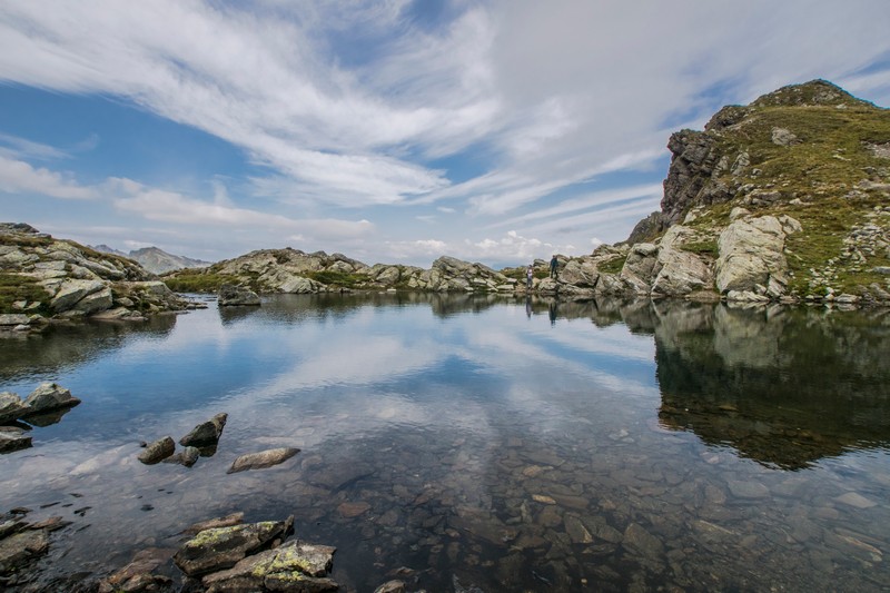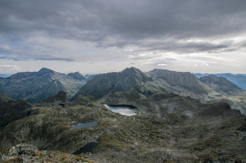 Langs de Unteren en Oberen Giglachsee en de Knappenseen naar de Rotmandlspitze (2453 m.); vanaf de top afdalen via de Krukesch en steil omlaag naar de KeinprechtHütte (1872 m.).