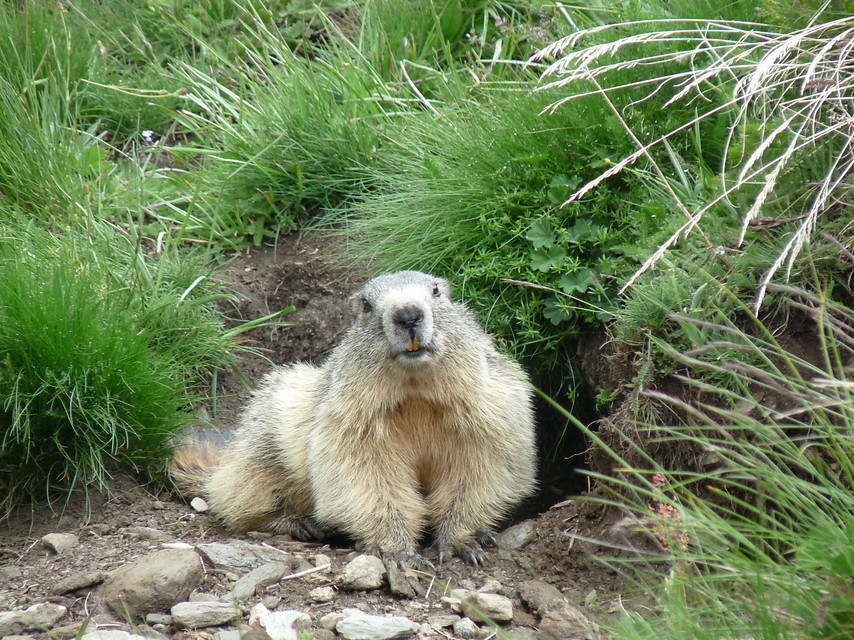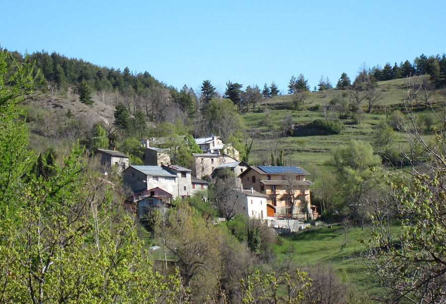 Ik weet niet wat de wandelgids onder de gemiddelde wandelaar verstaat, maar ik sta al na vijf uur lopen boven op de col. Onderweg word ik gezelschap gehouden door twee herten, ik zie ze regelmatig tussen de bomen. Op de col is een groot grasveld waar wildkamperen goed mogelijk is. Omdat het nog geen twaalf uur is loop ik echter liever door naar het dorpje Moulinet, nog eens drie uur dalen.