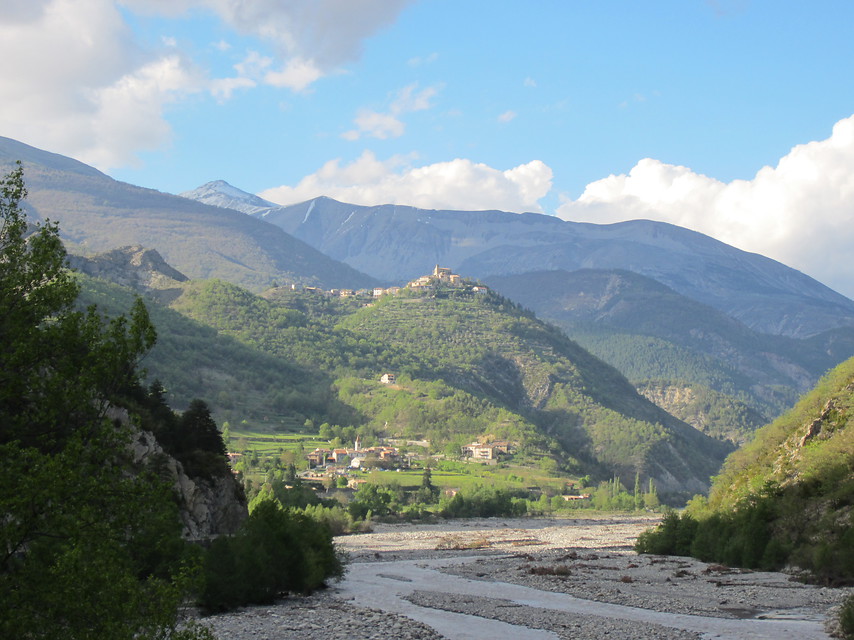 De etappe naar Saorge valt me zwaar. Het is inderdaad veel op en neer, maar dat ik heb het idee dat dat vooral het gebrek aan energie is. Het pad is wel mooi en Saorge, een oud bergdorpje, is prachtig om vanuit de bergen te naderen. Ik zie een grasveldje waar je, na toestemming van de mairie lijkt te mogen kamperen, maar ik heb niet genoeg eten meer en in het dorpje zelf is geen winkeltje. Ik neem de bus naar La Brigue, het volgende dorp op de route met een goed aangeschreven camping. Daar plan ik ook een rustdag in.