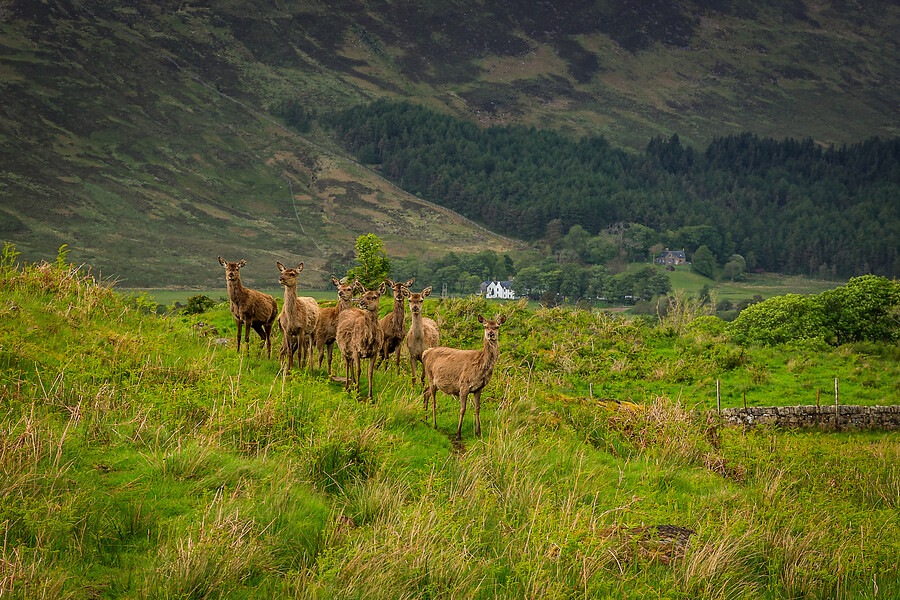 Zwaarbeladen lopen we door het dorpje in de richting van de heuvels en verder het binnenland in. We passeren een aantal honesty boxes, een kast gevuld met drankjes en snacks die je kunt kopen door wat geld achter te laten in de brievenbus. Hadden we dat maar eerder geweten, dan hoefden we misschien niet zoveel mee te sjouwen denken we. De trail voert langs de lokale whiskystokerij en we schuilen even voor de regen bij Beech Tree, de eerste van de vele gezellige pubs die tegenkomen. Het is even zoeken waar we onze tenten kunnen opzetten de eerste dag. In Schotland is het toegestaan om bijna overal te wildkamperen, al zijn er wel een aantal regels. Zo zijn kwetsbare natuurgebieden uitgesloten, en mag je niet op landbouwgrond of dicht bij wegen en huizen kamperen. We vinden een mooie plek in het bos waar we onze gevriesdroogde maaltijden opwarmen en snel onze slaapzak inkruipen.